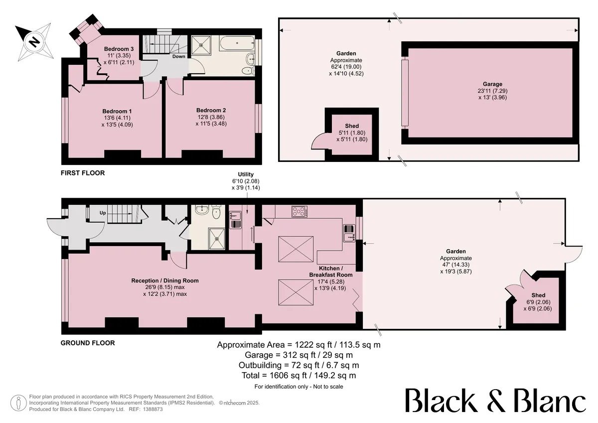 Black & Blanc are proud to present this beautifully modernised and extended three-bedroom end-of-terrace family home, ideally located on the popular Cherry Tree Walk in Beckenham. Offering approximately 1,606 sq. Ft. Of well-balanced accommodation across two floors, this property combines contemporary finishes with excellent future potential, including the opportunity to extend into the loft (STPP), making it a superb long-term family home. The ground floor is arranged to provide both comfort and practicality. A welcoming entrance hall leads into a bright and inviting living room, perfect for relaxing or entertaining. To the rear, the property has been thoughtfully extended to create a spacious modern kitchen, designed with everyday family living in mind and offering ample storage and worktop space. This area enjoys a pleasant connection to the garden, enhancing the sense of light and space. A well-appointed ground floor bathroom and seperate utility space completes this level. The first floor comprises three good-sized bedrooms, all well proportioned and filled with natural light, offering flexibility for family use, guests or home working. A contemporary family bathroom serves this floor, finished to a modern standard. Externally, the home continues to impress. The rear garden provides a private and enjoyable space for outdoor dining, entertaining and family time, complemented by useful storage. The property further benefits from a garage and additional external storage. To the front, a private driveway provides off-street parking for two cars, a highly desirable feature for the area.