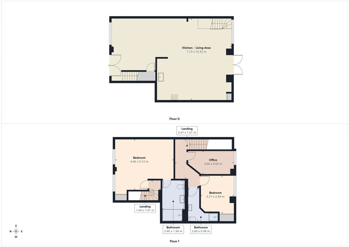 This well-presented home offers a generous open-plan ground floor layout, combining the kitchen, dining area and lounge into one bright and versatile living space. Large feature windows bring in excellent natural light throughout, while extensive built-in storage keeps the interior clean and uncluttered. A standout element of the ground floor is the striking floating staircase, crafted with thick timber treads and glass balustrades, creating an impressive architectural focal point. The property also benefits from a rare dual-staircase design, with two separate stairways leading to different areas of the first floor. This layout naturally zones the home, enhancing privacy between the main bedroom suite and the additional bedrooms or workspaces. The modern kitchen is fitted with sleek white cabinetry, oak worktops and a central island that provides additional workspace and acts as a natural hub for the room. The dining area sits beside floor-to-ceiling windows and benefits from long-run built-in storage, offering both practicality and a streamlined look. The lounge area provides comfortable space for seating and flows naturally through to the rest of the ground floor. Upstairs, the property features a spacious main bedroom with excellent natural light and full-height built-in wardrobes, along with a well-finished en-suite incorporating a walk-in shower and contemporary tiling. The secondary staircase leads to two further rooms, offering flexibility for use as bedrooms, a home office or creative workspace, all finished in a modern, neutral style. A separate bathroom on this level continues the contemporary theme, with large grey tiles, black fixtures and a generous walk-in shower.